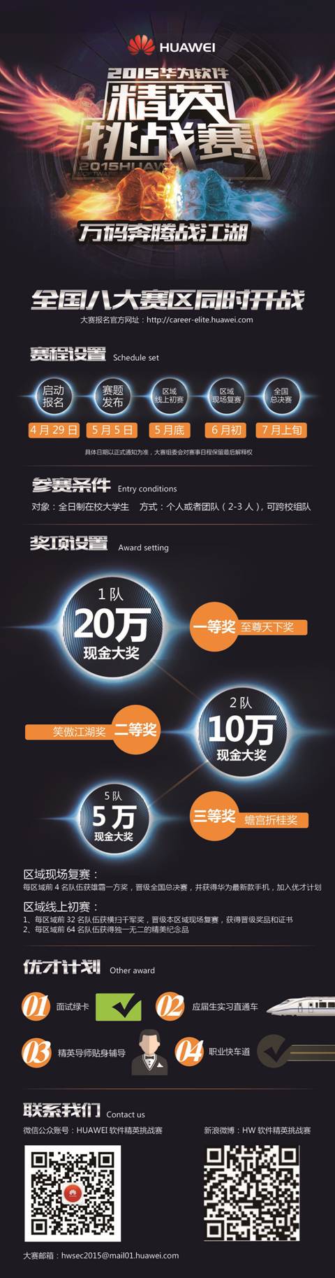 2015华为软件精英挑战赛于4月29日正式启动!请登录大赛官网:http://career-elite.huawei.com获取详细信息。