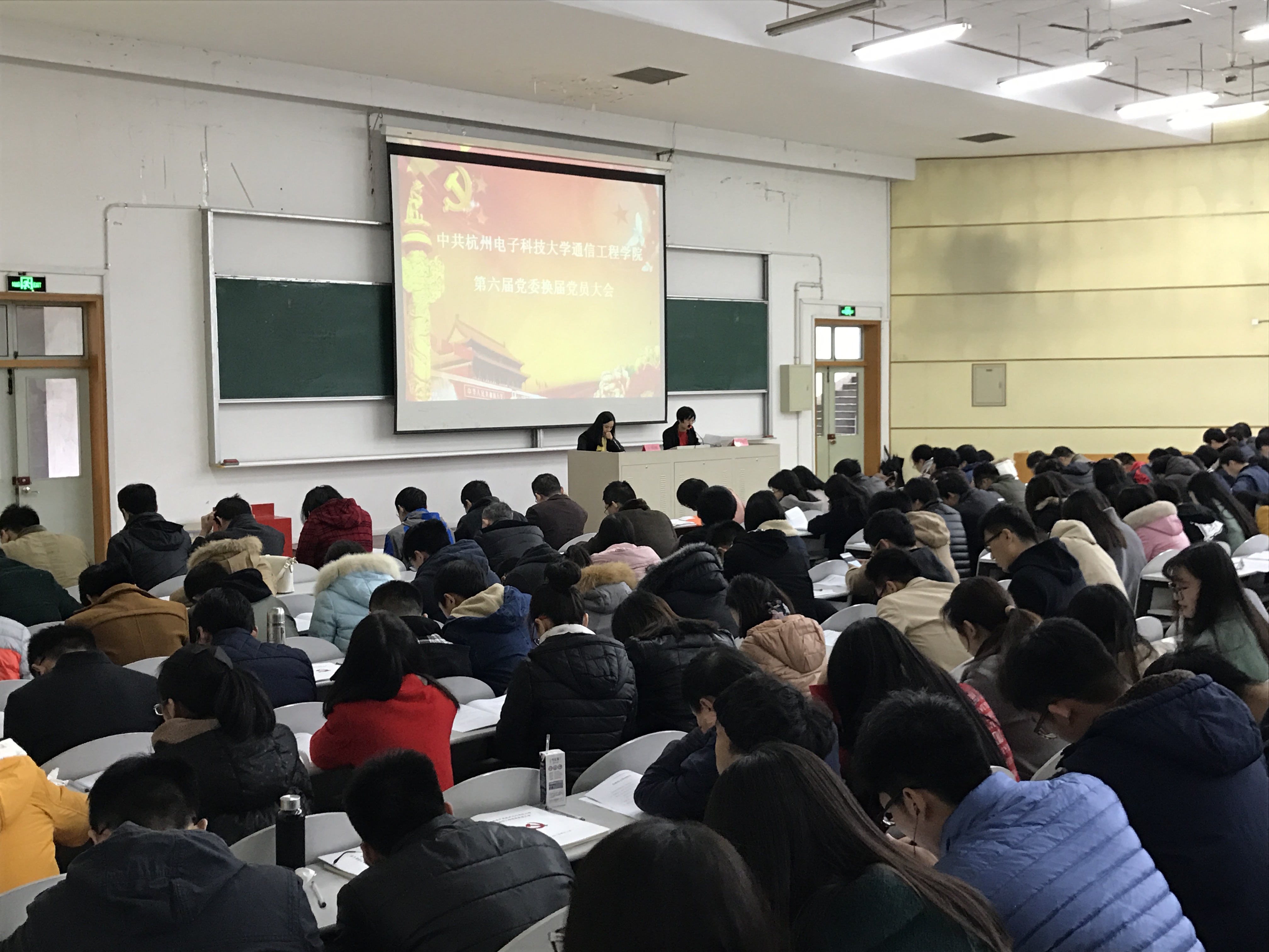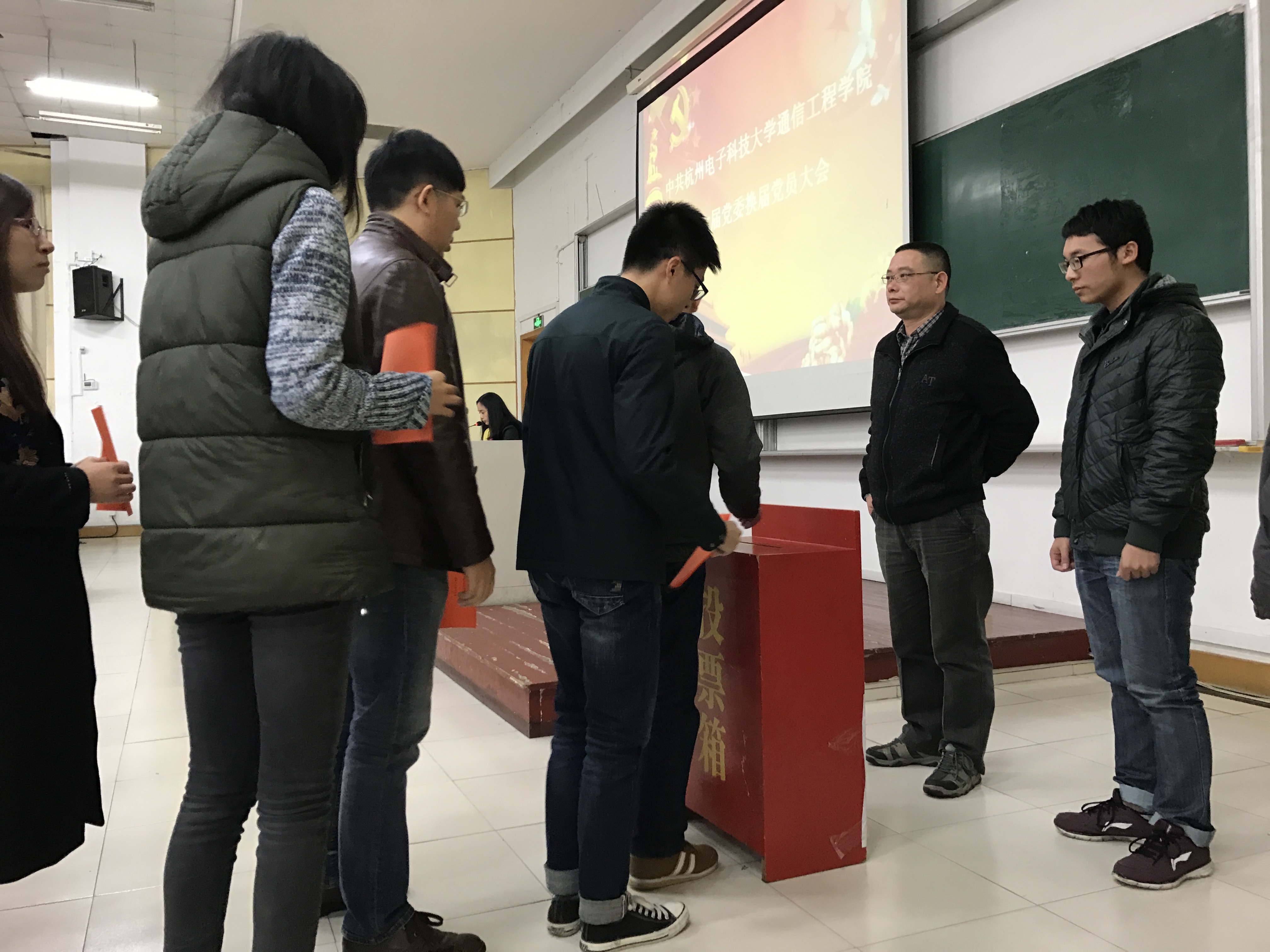 在激昂澎湃的国际歌里,中共杭州电子科技大学通信工程学院第六届党委换届党员大会圆满落幕。