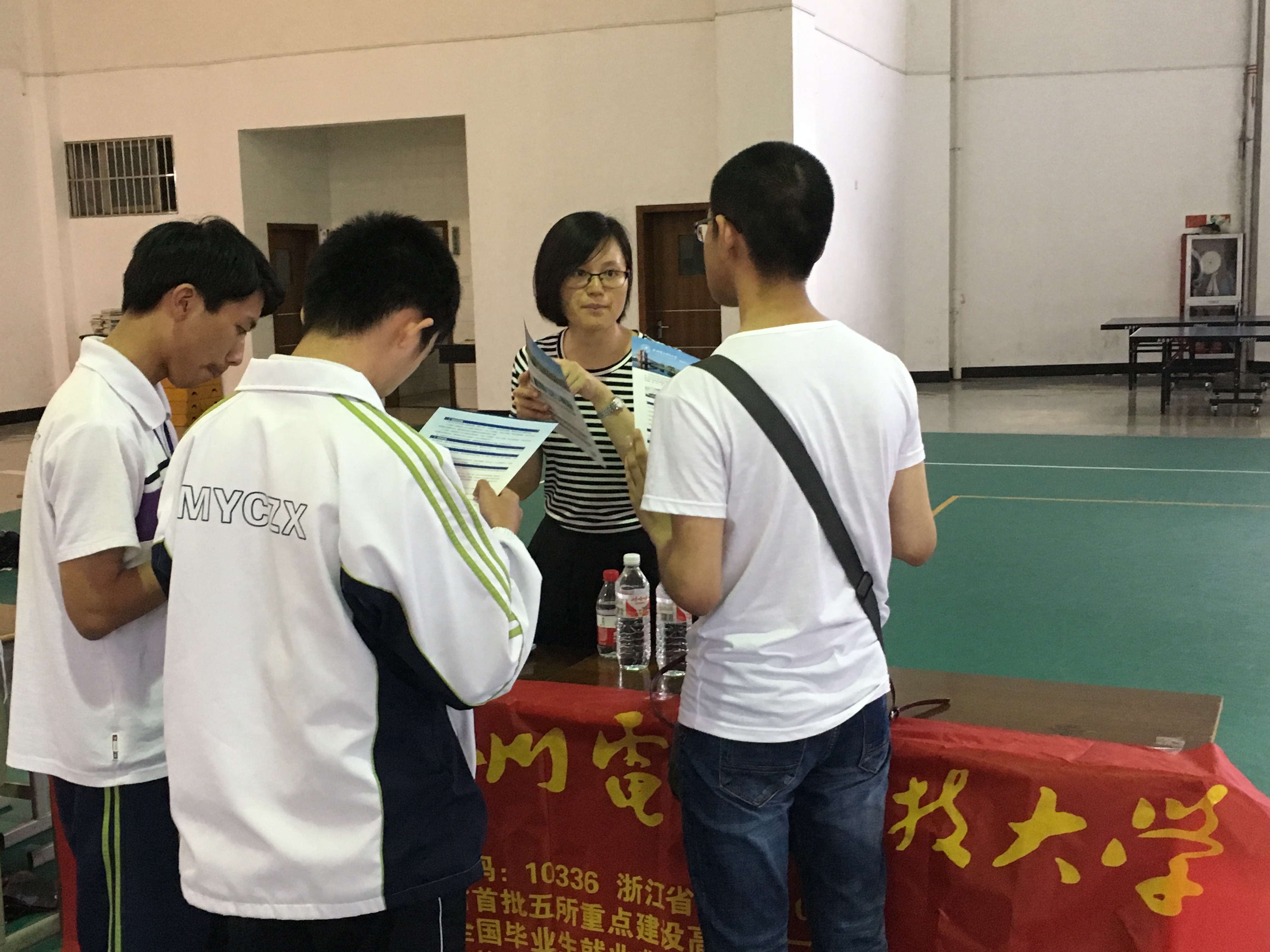 此次赴马寅初中学是通信工程学院2017年招生宣传工作的第一站,拉开一年一度高考招生宣传的序幕。通信工程学院高度重视招生宣传工作,组建一支由校职能部门领导、院领导、专业教师、辅导员、学生组成的招生队伍,将陆续奔赴绍兴地区的9所中学进行宣传,吸引优质生源报考我校。