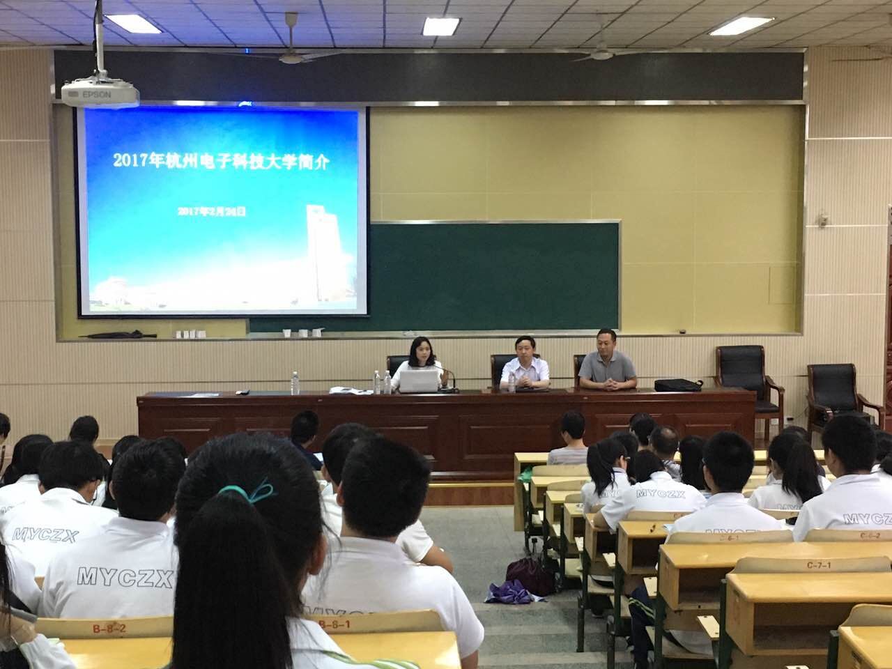 2017年6月13日,校合作发展处副处长李明,通信工程学院副院长李光球、副书记何雅丽及学院辅导员一行4人,赴绍兴嵊州马寅初中学参加招生宣传咨询会。在马寅初中学的鸿远楼一楼阶梯教室,杭州电子科技大学给刚参加完毕业典礼的高三学生和家长作了专场招生宣传报告会。