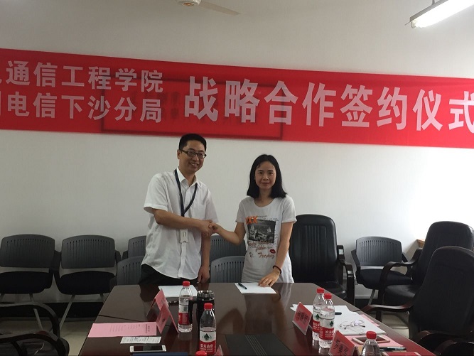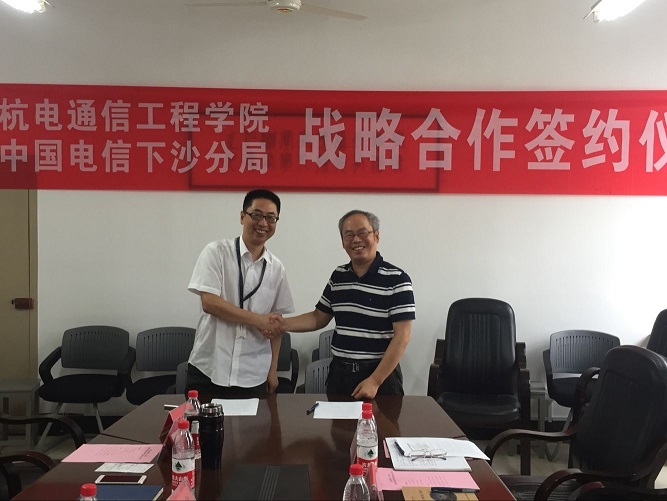 6月29日上午,在1教北314会议室,通信工程学院与中国电信下沙分局举行了战略合作框架协议签约仪式。中国电信杭州分公司下沙分局副局长王华、下沙分局高教支局长杨健、下沙分局高教副支局长刘俊曦、下沙分局高教客户经理李海燕、下沙分局高教支局总监王海明,学院院长唐向宏、党委书记罗美华、学院副院长李光球、学院党委副书记何雅丽出席了签约仪式。