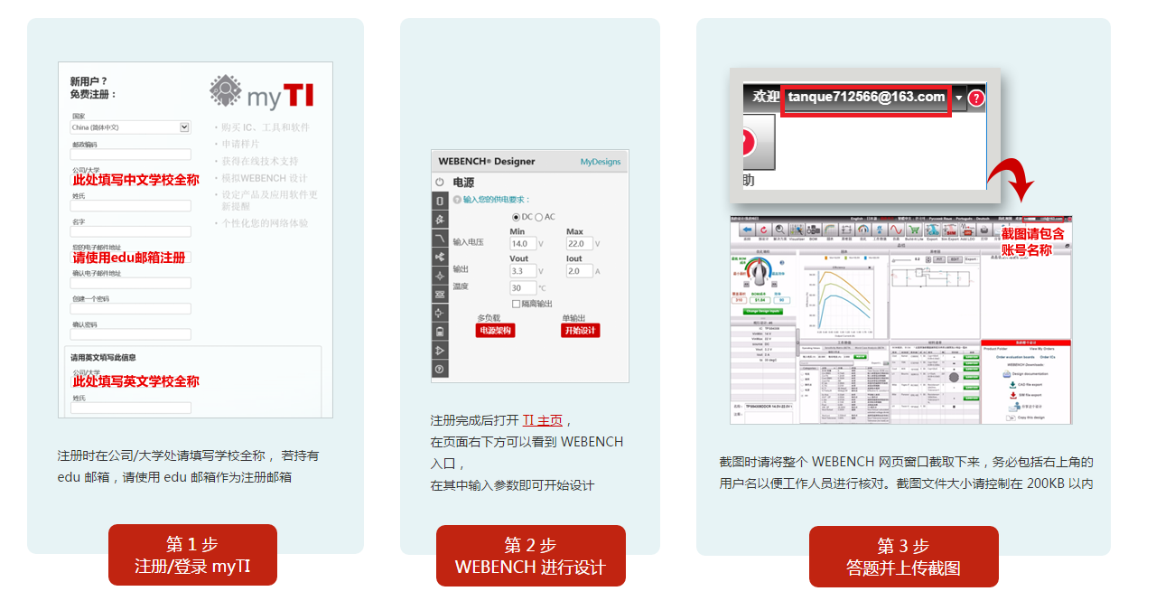 截图时请将整个 WEBENCH 网页窗口截取下来,务必 包括右上角的用户名 以便工作人员进行核对。截图文件大小请控制在 200KB 以内