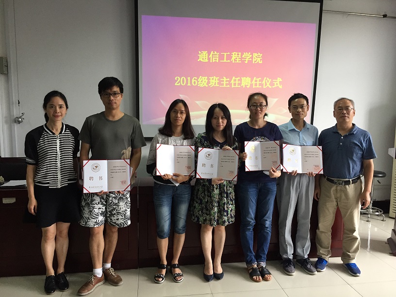 9月27日下午,通信工程学院在320会议室举行了班主任聘任仪式。学院院长唐向宏、副书记何雅丽及2016级班主任出席会议。