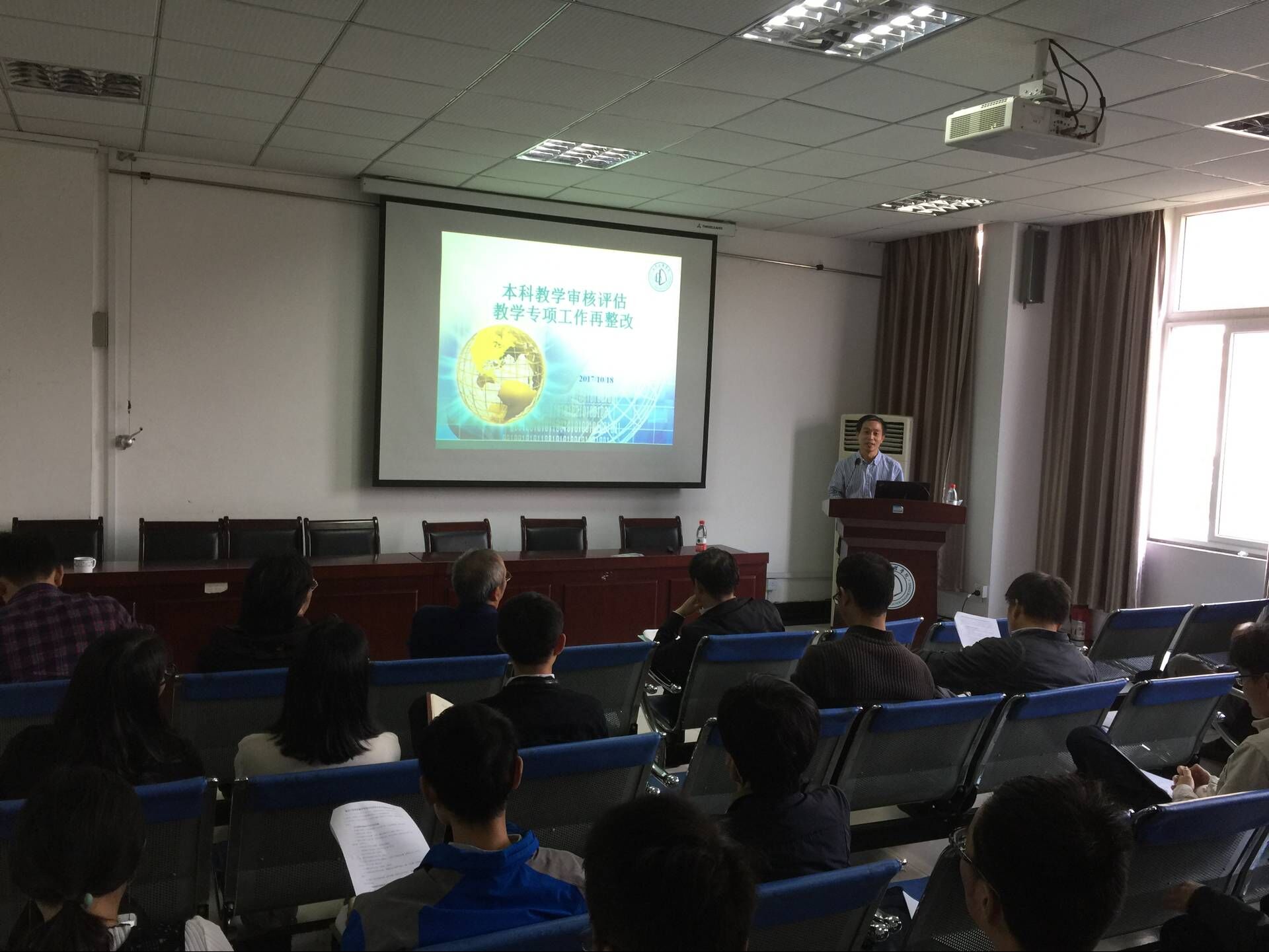会上,陈志平处长首先介绍了本次专业审核评估和教学专项工作再整改的重要性,对目前学校在专业审核评估工作中存在的问题做了重点分析,并对学院全体教师提出了做好本次专项整改工作的期望。接着,孙闽红副院长重点对学校教务处反馈的学院教学文档专项整改存在的问题向所有老师做了汇报,并计划通过教科办准备自查材料、教师自查、督导抽查以及形成学院自查整改报告等四个步骤对下阶段的教学文档整改工作进行了部署。