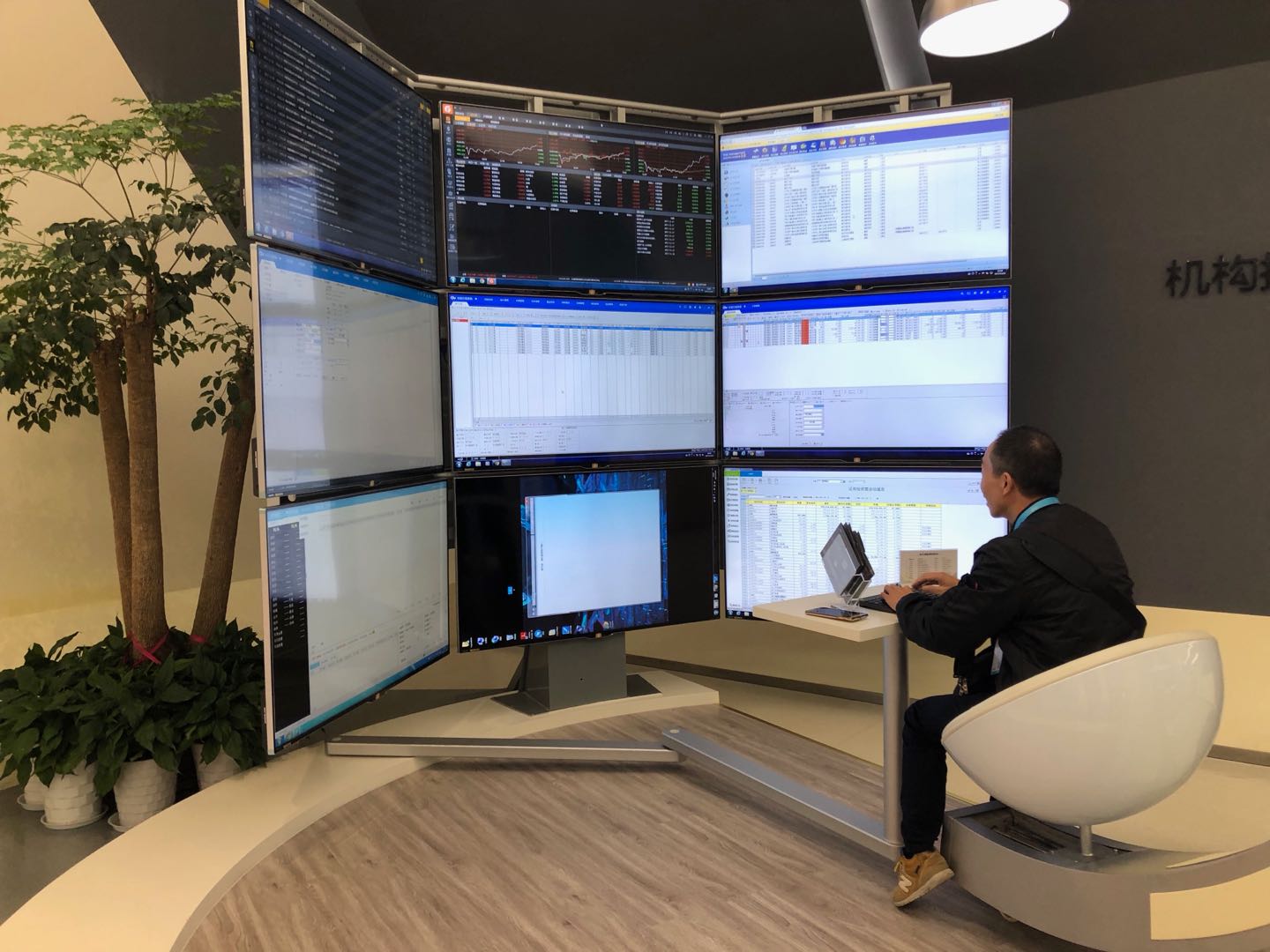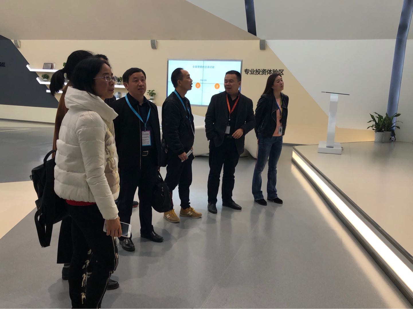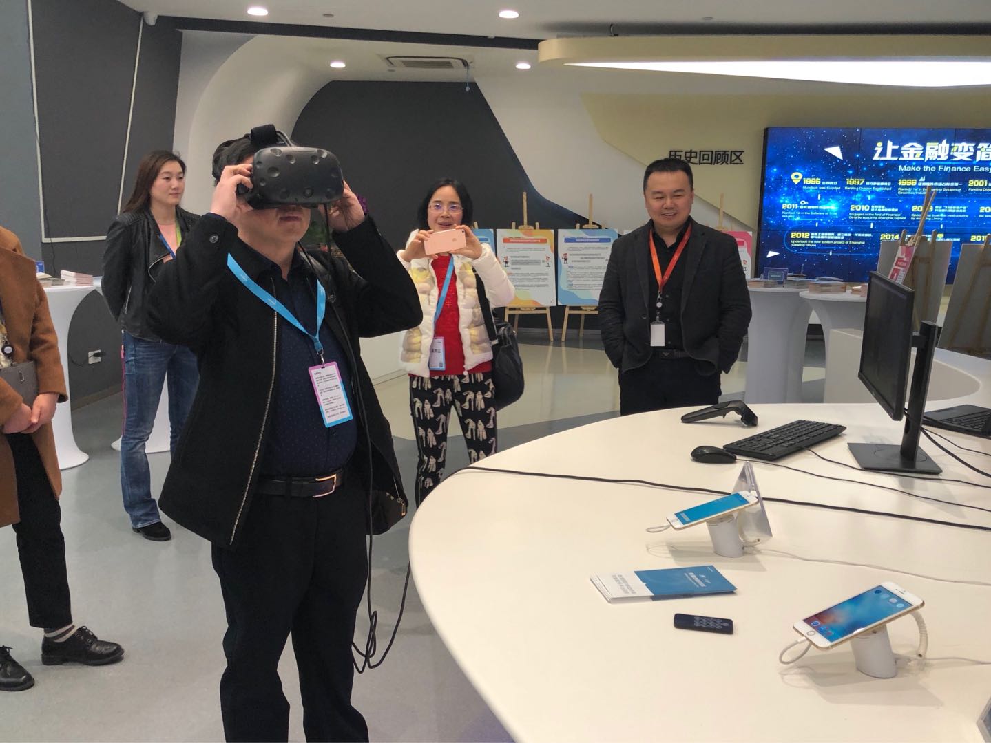 在座谈会结束后,公司相关负责人带领我院走访人员对恒生电子公司内部进行了参观,李光球和孙闽红分别实地体验了恒生自主研发的VR金融产品和多屏模拟投资系统。