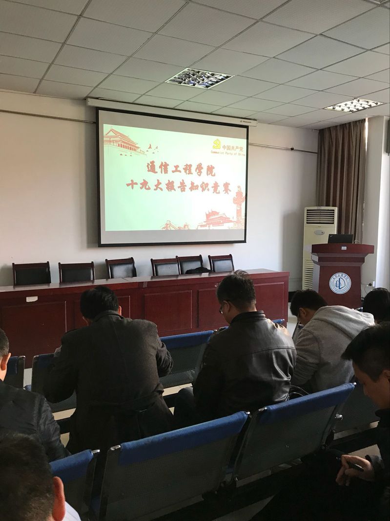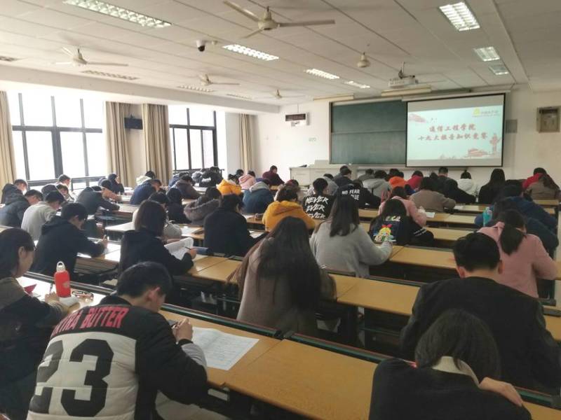 为了更好的学习、宣传、贯彻党的十九大精神,11月22日下午,通信工程学院开展了党的十九大知识竞赛。竞赛内容来自党的十九大报告原文及新党章,满分为100分,包括30道单选和20道多选题。按照党委要求,低于90分的党员将实行补考。