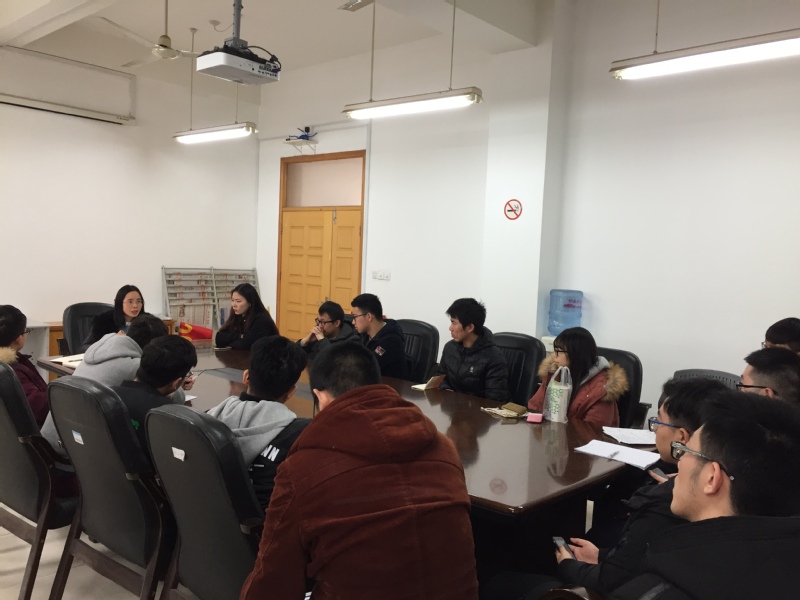 临近期末,党委副书记何雅丽老师针对本学年的学生工作情况向各年级班长进行情况介绍。主要从党建工作、关注特殊群体、班主任工作、毕业生就业率、本科生升学率、出国交流等多个方面进行。会上,何老师指出,班长要对班级贫困生、心理困难的同学多加关心,鼓励同学们积极与班主任交流,参与相关的课题研究,在专业方面能够学到更多的知识。同时,何老师还要求每位班长要做好2018年班级工作计划,尤其是在下学期开展的教学评估,提高到课率,降低旷课率和迟到率,以优良的学风迎接教学评估。