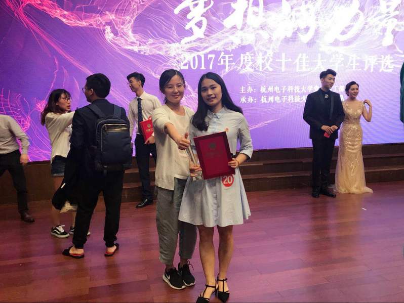 2018年5月9日晚,以“梦想的力量”为主题的2017年度校“十佳大学生”评选大会,在下沙校区文化活动中心剧院举行。杭州电子科技大学党委副书记朱斌、浙江省教育厅下沙园区办主任胡惠华、学校相关职能部门负责人、各学院学生工作负责人出席评选大会,候选人家长们纷纷到场支持。