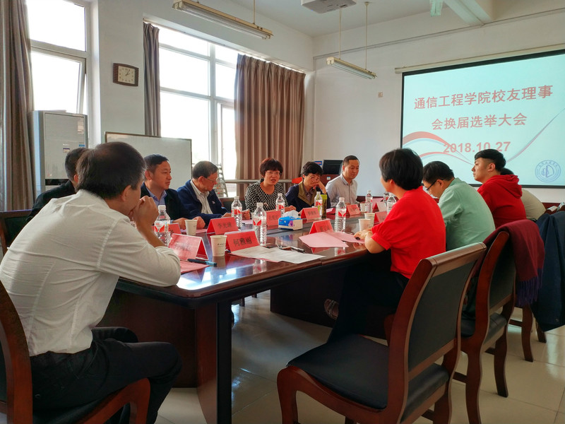 10月27日下午,通信工程学院第二届理事会换届选举大会在第1教学楼314会议室举行。名誉会长孔宪正、学院全体党政领导班子、合作发展处副处长、校友理事会代表出席了本次会议。会议由学院党委副书记何雅丽主持。