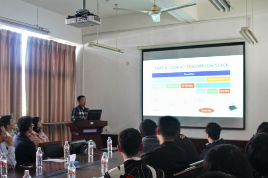 会上,专家湛斌从软件stack、硬件架构、性能分析多方面介绍了AI计算,并做一个例子生动讲解AI计算的流程,最后对在场老师和学生感兴趣的问题做了详细地解答。