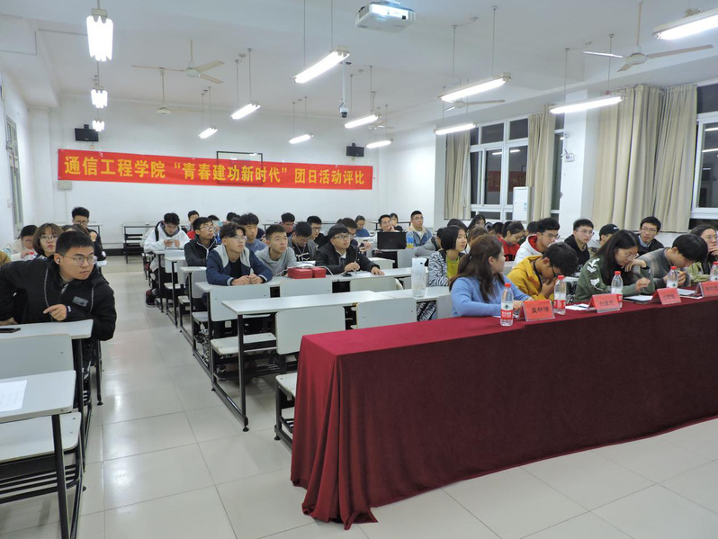 11月25日晚,由通信团委主办的通信工程学院“青春建功新时代”主题团日活动评比于七教北120顺利进行,2018级8个团支部团支书和大众评审和评委共四十余人参与此次评比活动。