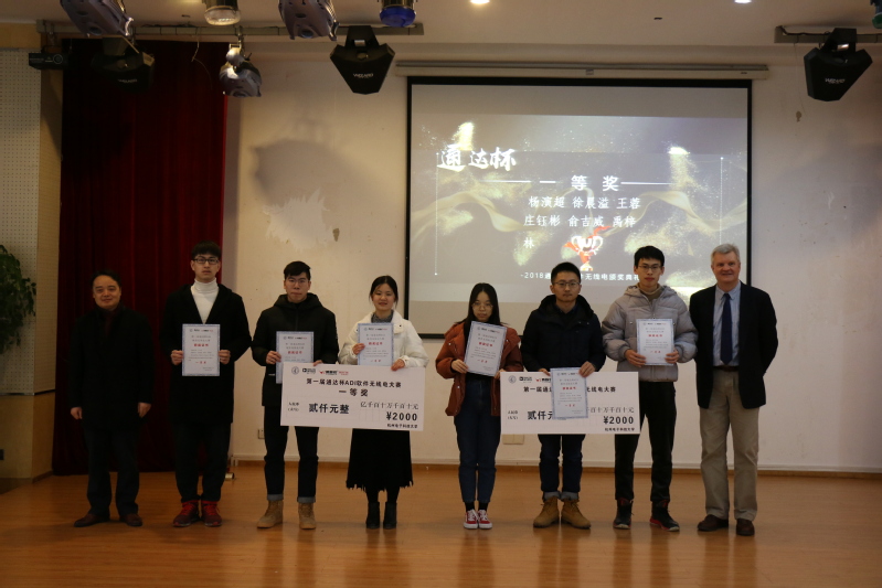 12月7日上午,通信工程学院第一届通达杯ADI软件无线电大赛颁奖典礼在科技馆教工之家举行,副校长徐江荣、院党委书记罗美华、副院长李光球、孙闽红、院党委副书记何雅丽、亚德诺半导体全球大学计划总监Zoran Zvonar(卓然∙茨瓦纳)、ADI大学计划经理高威先生以及学院师生代表出席,与会嘉宾对获奖选手颁发证书,并合影留念。