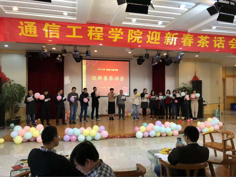 12月28日下午,通信工程学院在科技馆一楼教工之家举行了2019年迎新春茶话会。全体党政领导班子以及教职工欢聚一堂,共叙深情厚谊、展望美好未来。副校长吴卿、校工会主席沈莉应邀参加了此次茶话会。