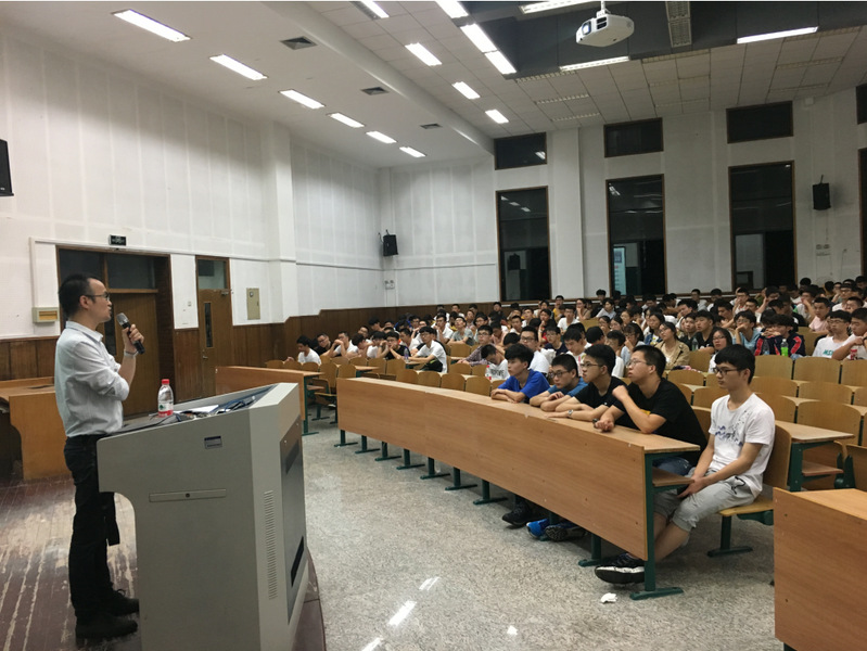 严老师从国家、人生、财产、交通、消防、生活、心理、学习、公共等十个方面来和同学们讲述大学生活中可能出现的安全问题,并用发生在我们学校因未拔掉笔记本电源而导致的实验室火灾惨案事件,为在场的每位同学敲响了警钟。严老师还特别强调了同学们校内外出行安全问题,避免被盗被骗。讲座的结尾,严老师给学生列举了校园内常见的违法犯罪行为,用这些行为的严重后果来警醒同学们。