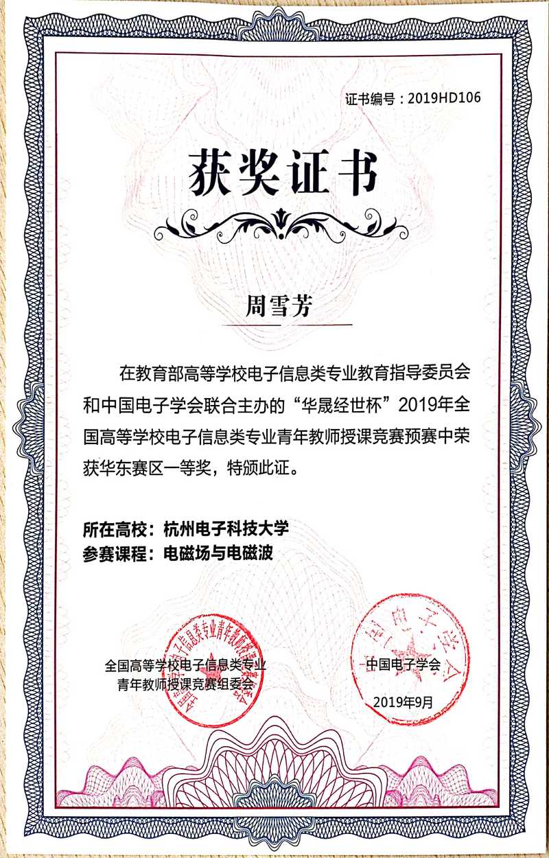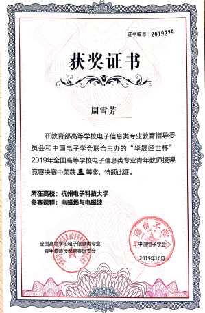 我校通信工程学院周雪芳教师参赛的《电磁场与电磁波》在初赛中获华东赛区一等奖,决赛获三等奖。