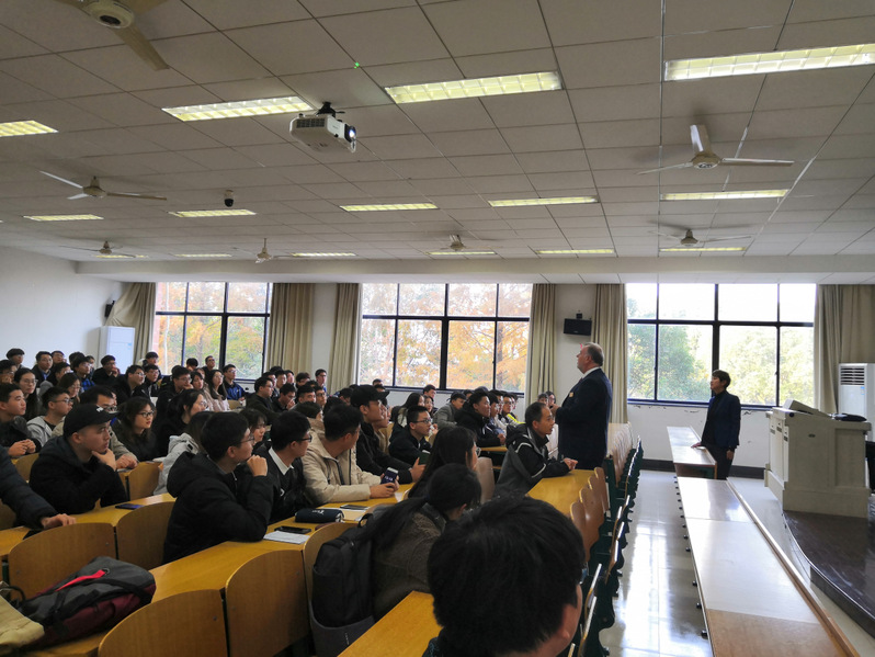 2号下午,在12教202室,Truman副校长和丁欢主任还为部分学生介绍了UMKC计算机与工程学院,并对学生们关心的交流项目作了详细介绍,双方进行了积极的互动。