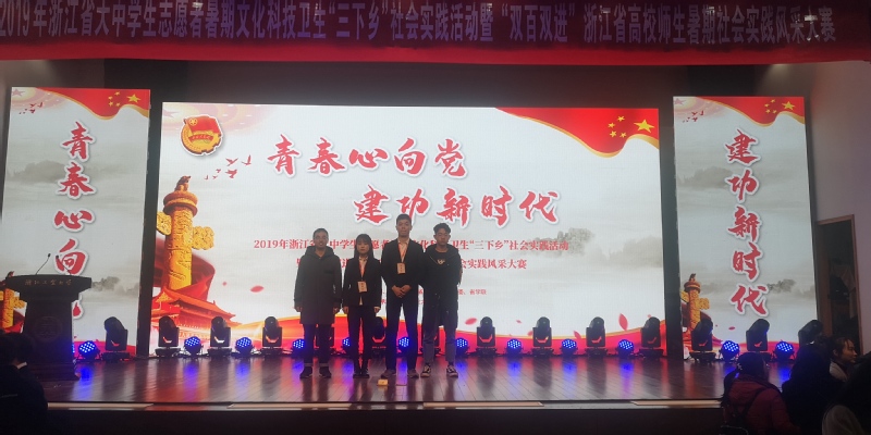 12月19日—20日,由省委宣传部、省文明办、省教育厅、团省委、省学联共同主办的2019年浙江省暑期社会实践风采大赛决赛在浙江工业大学举行,在本次暑期社会实践风采大赛上,来自全省各高校433支团队参加,按照红色寻访、观察宣讲、实践服务、其他四大类别进行分组,激烈角逐,经文本评审、秘密答辩以及公开答辩环节,共评选产生百强团队、十佳团队以及十佳提名团队。我校黔行团队在比赛中表现出色,获得2019年浙江省暑期社会实践风采大赛十佳提名奖,也是杭电唯一一支挺进20强的队伍。