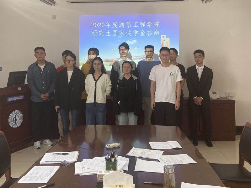 10月9日上午,通信工程学院2020年度国家奖学金评审答辩会议在第一教学楼北314会议室举行。出席本次会议的有:院长唐向宏,院党委副书记何雅丽,研究生导师王海泉、池灏、夏永祥、刘春山,教学秘书楼浩英,研究生辅导员何仔晶,以及三位研究生代表。