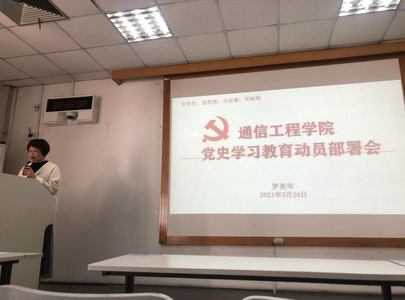 3月24日,通信工程学院全体教职员工在3教南101召开“通信工程学院党史学习教育动员部署会”,学院党委书记罗美华主持会议。
