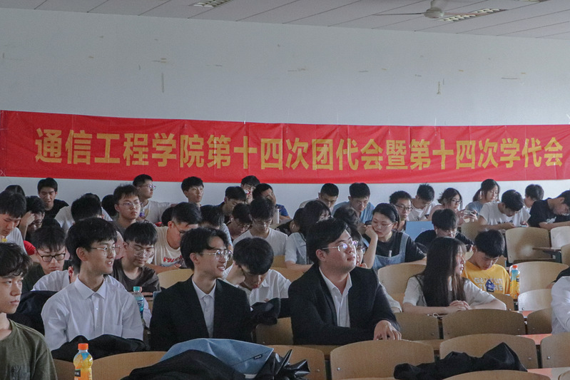 杭州电子科技大学通信工程学院于6月9号下午召开了第十四次团代会暨第十四次学代会。本次会议由通信工程学院20级本科生柴志强同学主持,通信工程学院党委副书记何雅丽老师、通信工程学院团委书记徐君仪老师、通信工程学院团委副书记黄笑眉老师出席本次大会。来自通信工程学院各年级团员、学生代表共120人参加本次会议。