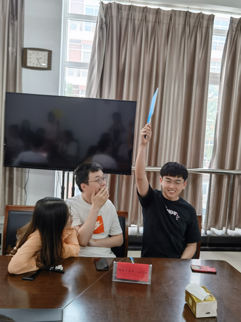 线下党史知识竞赛由支部各派一支由三名党员组成的队伍参加,共有8个支部参与本次活动。活动的上半场是教师组,三支教师党员队伍率先上阵。从难度一般的必答题到难度不断加深的多选题,以及答错要倒扣分的抢答题,比赛不仅考验着选手们的知识储备量,还考验着他们的手速和心理承受能力。三个支部的老师们团结合作、相互交锋,沉着应对。经过激烈的对决,周雪芳、翟彦蓉、姜斌和黄保虎老师代表的通信创新团队党支部凭借对党史知识的熟练掌握,以绝对优势拿下一等奖;杨波、张爱桦、叶学义老师代表的信号与信息处理党支部通过团队协作获得二等奖;滕旭阳、吴超、魏超老师代表的通信与信息系统党支部以微弱比分惜败,获得三等奖。