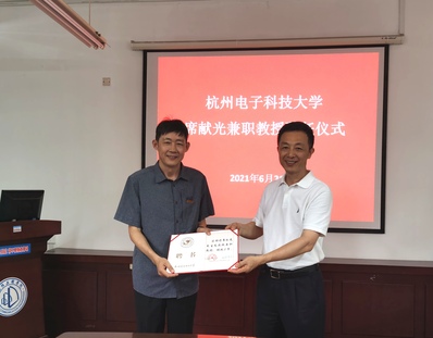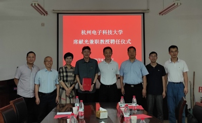 唐向宏首先简要介绍了席献光的学习工作经历,以及在电子系统工程的设计研制和军民融合等方面的主要成就。随后,郑宁为席献光颁发杭州电子科技大学兼职教授聘任证书并为他佩戴校徽,他对席献光大力支持学校的发展表示真诚感谢。席献光衷心感谢学校的邀请,作为校友,他向学校介绍了自己工作开展的三大块内容,并希望回报母校,为学校发展做出自己的贡献。