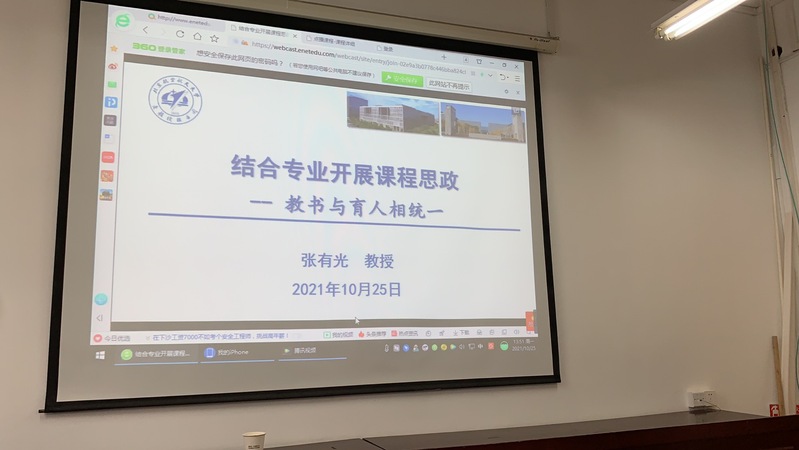 2021年10月25日下午,通信工程学院在一教北314举行教学活动,观看北京航空航天大学张有光教授的线上教学讲座,主题为“结合专业开展课程思政-教书育人相统一”。教学副院长应娜、新进青年教师以及部分优课负责人参加本次活动。