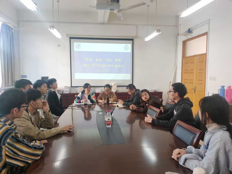为了促进教风、学风建设,进一步了解学生对本学期教学各项工作的看法,切实提高本科教学工作质量,2021年11月10日下午,通信工程学院在第一教学楼314召开了“答疑、解惑、交流、提高”为主题的期中学生座谈会。会议由学院副书记何雅丽和教学副院长应娜主持,教科办虞成磊老师和不同年级不同专业的学生代表参加了本次会议。
