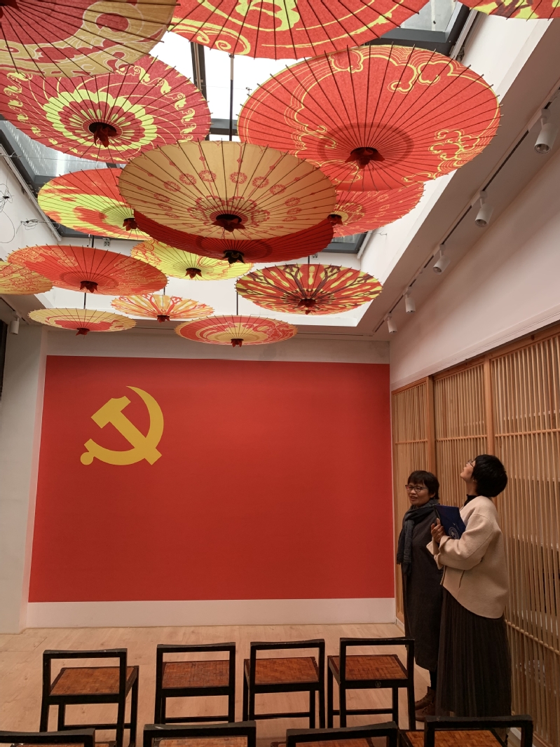 中国美院设计艺术学院党委书记陈燕屏、副书记刘超群热情接待我院一行人。陈书记带领大家一路参观设计艺术学院的人文空间和党员之家,学院富有特色的建筑,极具设计感的作品,充满着人文艺术气息,给大家留下深刻印象。