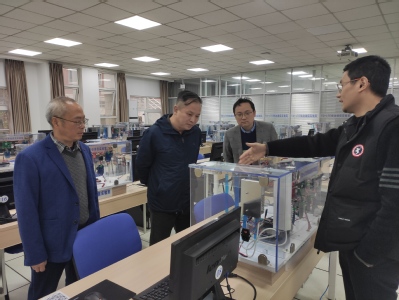 调研会后,唐向宏带领杨校长参观了学院实验室。杨校长仔细查看了实验室现场,询问设备情况,期望学院在实验教学中进一步提升工科学生应用能力和综合素质,培养优秀的通信人才。