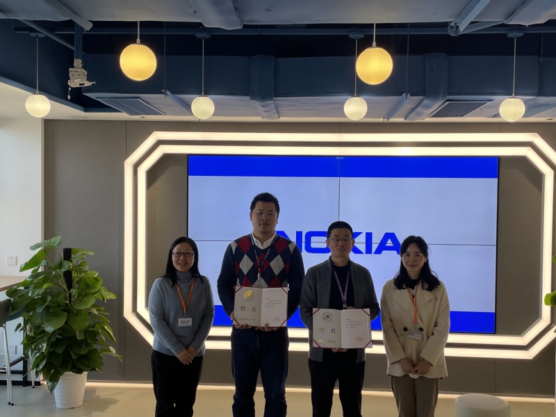 陈颖向大家具体介绍了诺基亚杭州研发中心的具体概况,分享了与浙工大合作的模拟企业项目的经验。何雅丽代表学院欢迎诺基亚与我院开展深入合作,以此来加深诺基亚在学生中的知名度;应娜也向会谈人员介绍了学院的专业分布、新工科班级的实践需求以及现阶段校企合作的几种形式。会上,学院向两位诺基亚企业专家颁发了企业导师聘任证书。