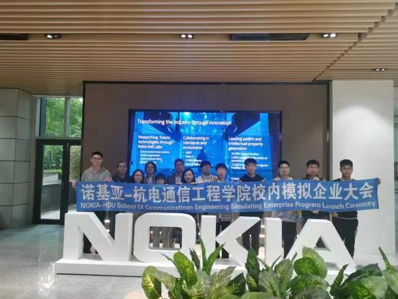 2022年4月13日上午,通信工程学院副院长应娜、杭电-诺基亚校企基地负责人郭锐带领2020级通信工程(智能信息与数据处理)新工科班部分同学到诺基亚杭州研发中心参加“诺基亚--杭电通信工程学院校内模拟企业”启动仪式。