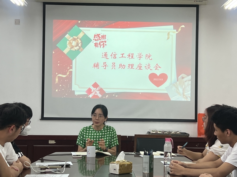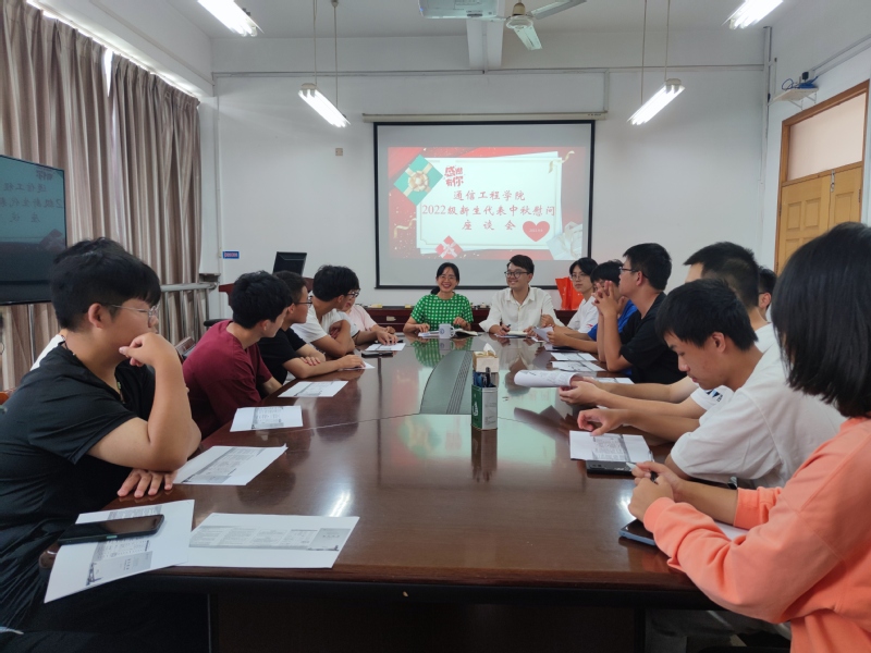 2022年9月9日下午,通信工程学院在第一教学楼314召开2022级新生代表中秋慰问座谈会和新生辅导员助理座谈会。