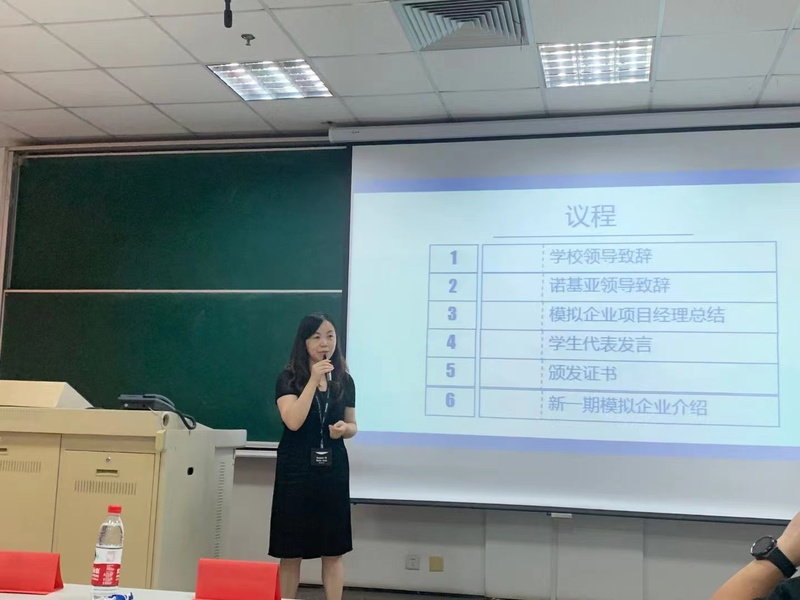 戴处长在致辞中,首先祝贺首批参加模拟企业的8位同学顺利结项,希望他们能从这段经历中总结经验,指导以后的实践学习甚至职业生涯选择,并对诺基亚公司和杭电合作,给学生提供实践学习、实习的机会表示感谢。希望以后校企双方能在现有合作的基础上,拓展合作的广度和深度。