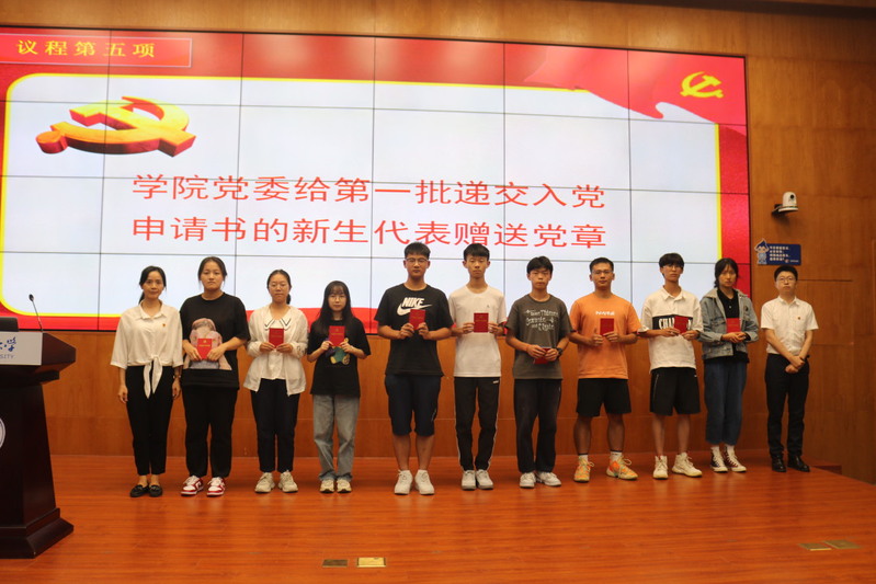 学习完党课后,大一新生们对入党有了新的认识,也坚定了入党的决心,并向党组织庄重地递交入党申请书。同时院党委副书记何雅丽为第一批递交入党申请书的新生代表赠送党章。