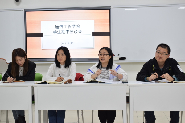 为了促进教风、学风建设,进一步了解学生对本学期教学各项工作的看法,切实提高本科教学工作质量,2022年10月26日下午,通信工程学院在第7教学楼北218A召开了本学期的期中学生座谈会。会议由学院教学副院长应娜主持,学院副书记何雅丽、教科办虞成磊、学工办辅导员徐君仪、黄笑眉、吴马超、范金龙等辅导员以及不同年级的班长、学习委员参加了本次座谈会。