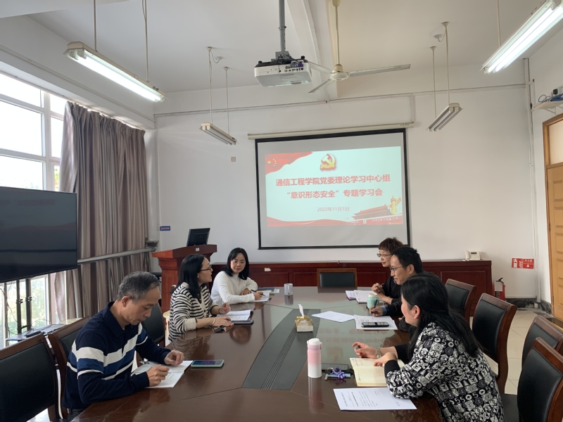 11月1日上午,通信工程学院党委理论学习中心组召开专题学习会,认真学习习近平总书记关于意识形态安全方面的重要论述。会议由党委书记罗美华主持,党委理论学习中心组成员参加本次专题学习会。