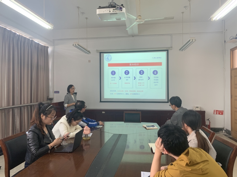 蒋红燕老师向新入职老师详细介绍人事相关政策解读,重点解读了学校最新的职称评审条件和要求,并向新老师提出了几点意见,建议各位老师认真研读政策要求,提前做好职业生涯规划。