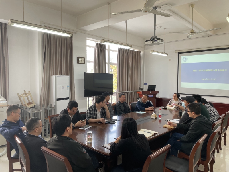 2022年11月3日上午,通信工程学院在第一教学楼北314召开了2022-2023-1学期期中教学教师座谈会。会议由学院教学副院长应娜主持,教学督导组成员代表、院长助理、教研室主任、教学骨干教师以及年轻老师代表等15人参加了本次座谈会。