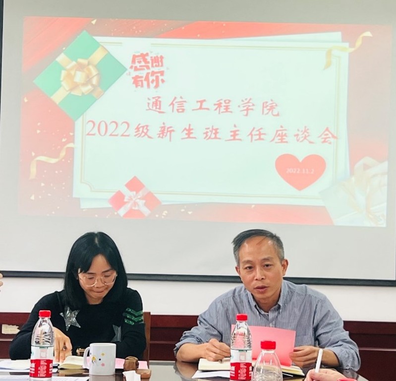 通信工程学院历来重视班主任工作,充分肯定班主任在学院专业教育及班集体建设中发挥的重要作用,聘请9位优秀专业教师担任2022级班主任工作。为了更好落实新生班主任工作开展,11月2日下午,通信工程学院2022级新生班主任座谈会暨培训会在一教314会议室召开,院党委副书记何雅丽、副院长孙闽红及全体新生班主任、辅导员参加。本次会议由院党委副书记何雅丽主持。