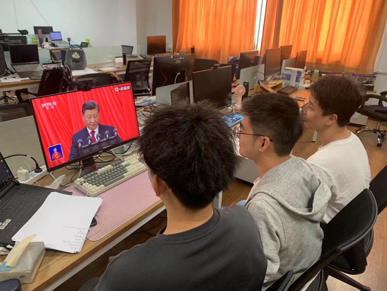 其他师生党员以支部为单位组织观看,通信创新团队党支部、通信与信息系统党支部等教工支部组织线上集体观看,并在群里进行发言交流。学院还组织团支书等学生干部进行集体观看。