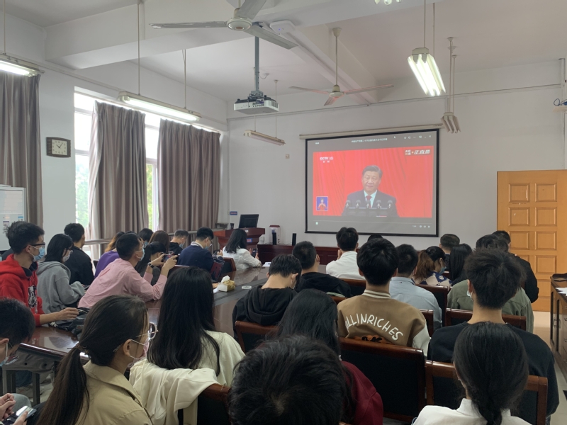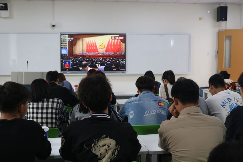 10月16日上午,通信工程学院师生在一教北楼314收听收看党的二十大开幕会。学院党委书记罗美华、院长唐向宏等全体党政领导班子成员以及党委委员、支部书记、科级干部和部分师生代表集体观看直播。在近2个小时的报告中,现场不断响起掌声。