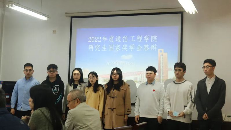 一阵秋风带来了收获的果实,10月12日下午三点,2022年通信工程学院研究生国家奖学金答辩于一教314举行。通信工程学院院长唐向宏、党委副书记何雅丽、王海泉教授、张旭光教授、池灏教授、研究生辅导员何仔晶、研究生辅导员孙雨萌、研究生教学秘书楼浩英八位老师,以及三位研究生学生干部出席本次答辩。