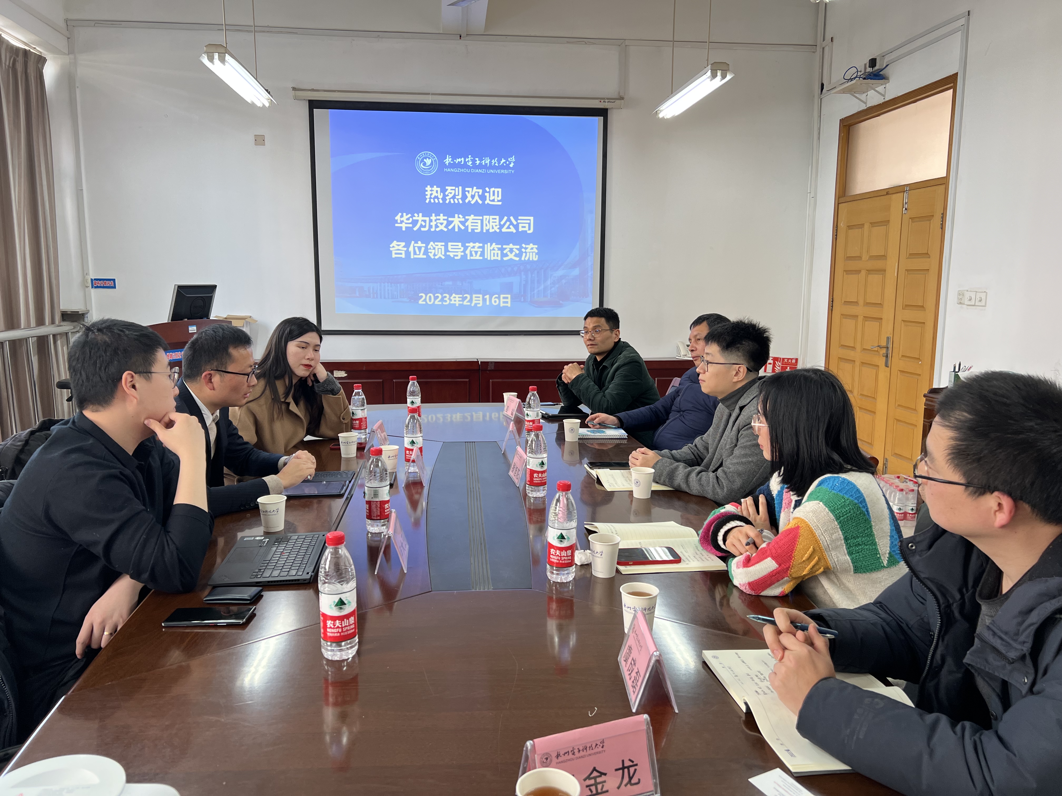 2023年2月16日,海康威视王谦、吴浩宇、廉宏爽,华为全球培训中心翟朝平、卢大卫、季小喻来我院进行合作交流,学院副院长应娜、院党委副书记何雅丽、院长助理滕旭阳等老师热情的接待了海康威视、华为一行。