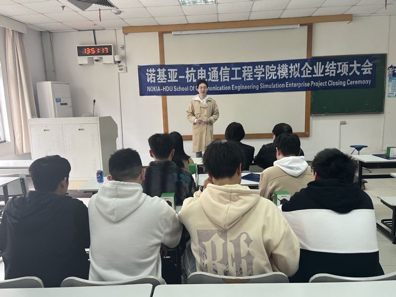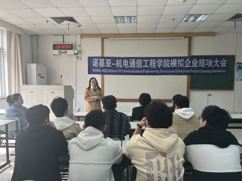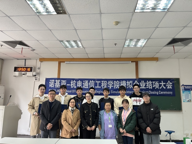 3月1日下午,诺基亚-杭电通信工程学院第二期模拟企业结项仪式在3教115隆重举行。通信工程学院参与第二期模拟企业的8名同学顺利结项。诺基亚杭州研发中心副总经理陈颖女士,模拟企业项目经理姜浩真、朱慈慧到会祝贺,通信工程学院应娜副院长、校企负责人郭锐参与仪式。