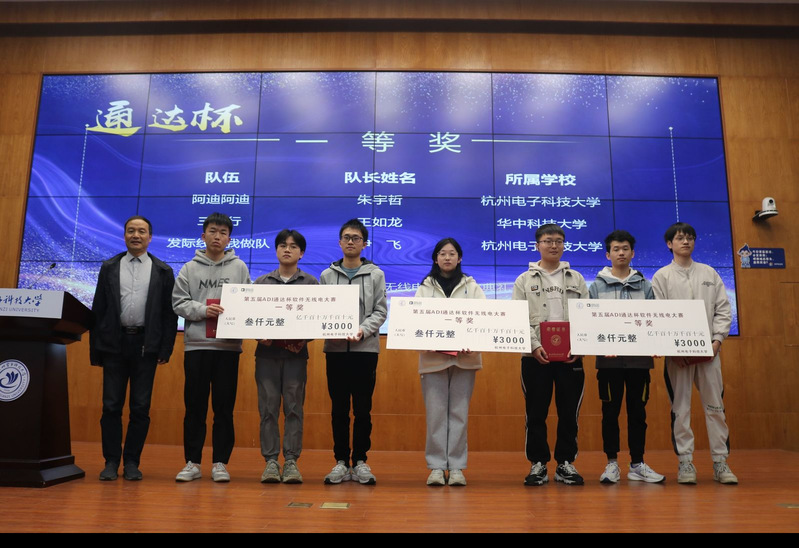 最后,全体领导老师和获奖同学们上台合影留念。至此,第五届ADI通达杯软件无线电大赛圆满结束。