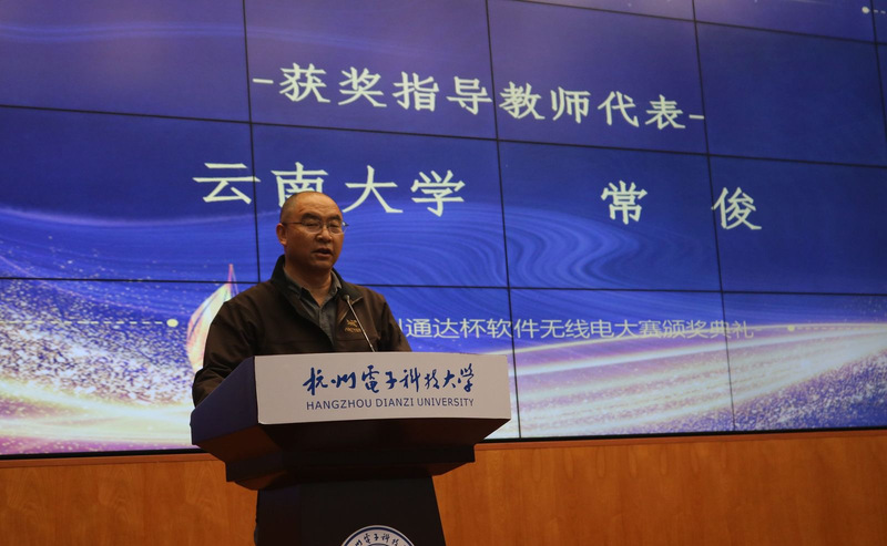 接下来是进行获奖教师颁奖,云南大学常俊老师和杭州电子科技大学姜斌老师获得优秀指导教师荣誉称号。常俊老师表示,软件无线电大赛是一个非常有意义的比赛,不仅帮助学生对无线通信系统的认知,还磨练了参赛师生坚持不懈、敢于挑战的竞赛精神,并可以将其延续到以后的学习工作中去。