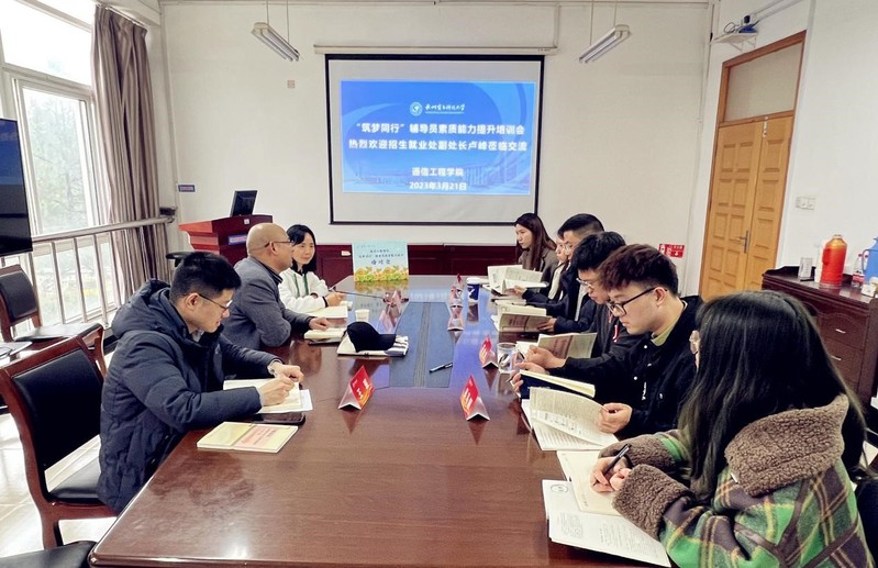 2023年3月21日下午,我院特邀学校招生就业处副处长卢峰来我院指导工作。学院党委副书记何雅丽、学工办全体辅导员参与了本次会议。