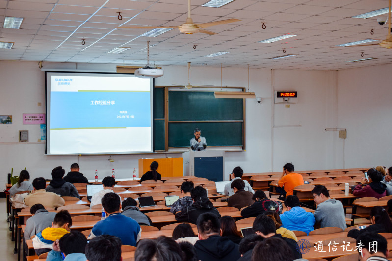 3月29日下午,为进一步加强校友与在校生之间的互动交流,发挥校友的模范榜样作用,激励在校生见贤思齐、汲取力量。同时,加强学院和企业之间的合作共建,通信工程学院于6教北302教室结合大学生职业生涯规划课开展了“企业周周见,校友周周讲”第4期校友讲堂。本期校友讲堂我们邀请到了三维通信研发PMO、2005届校友——俞利光和三维通信射频研究院TDT经理、2011届校友——陈高强给同学们讲座分享。讲座由通信工程学院辅导员范金龙老师主持。