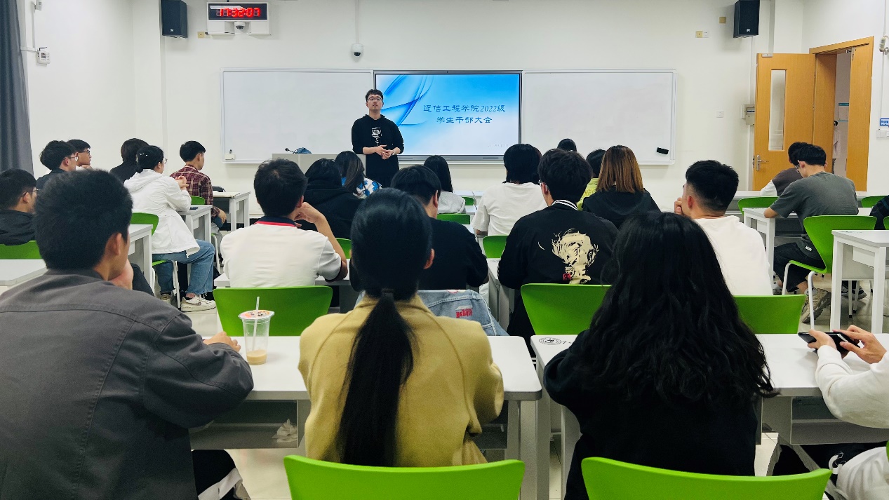 学习贯彻习近平新时代中国特色社会主义思想主题教育,进一步加强学生干部理论武装建设,坚定理想信念、凝聚力量,用党的实践创造和历史经验启迪智慧、砥砺品格。5月12日下午,通信工程学院开展2022级学生干部大会暨“践行新时代使命担当,把握新征程前进方向”主题宣讲会,通信工程学院学生第二党支部书记、2022级辅导员吴马超以及全体2022级学生干部参加会议。